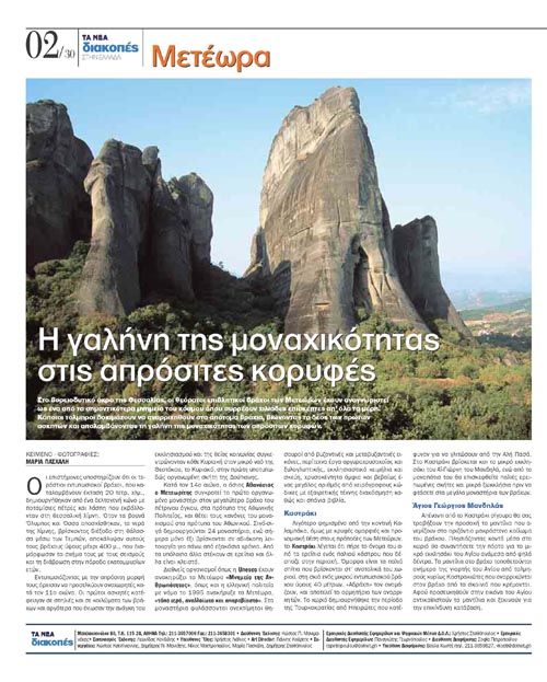 Αφιέρωμα στα Μετέωρα στην εφημερίδα “ΤΑ ΝΕΑ”