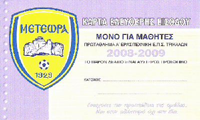 Σε μια πολύ καλή κίνηση προχώρησε η ομάδα των Μετεώρων προσπαθώντας να φέρει την νεολαία ακόμα πιο κοντά στον αθλητισμό και την ομάδα. Στην προσπάθεια αυτή θα μοιράσει σε όλους τους μαθητές των σχολείων της Καλαμπάκας κάρτες ελεύθερης εισόδου προκειμένου να μπορούν να παιδιά να εισέρχονται στο γήπεδο χωρίς την καταβολή εισιτηρίου.