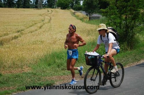 Σε άμεση επικοινωνία που είχαμε μαζί του, ο Γιάννης Κούρος μας είπε: « …Η επίδοση αυτή δεν είναι καθόλου ενδεικτική της εκεί απόδοσής μου» και συνεχίζει. Τη δεύτερη νύχτα σταμάτησα για να αλλάξω παπούτσια, μέσα σε 5 λεπτά υποτίθεται και τελικά χρειάστηκε 50 λεπτά με τον εξοπλισμό υπόδησης. Με την αλλαγή διαπίστωσα ότι, τα δάχτυλα των ποδιών μου είχαν πολλές φουσκάλες και τα παπούτσια ήταν γεμάτα από χαλικάκια και χώματα. Αργότερα έπεσα κάτω στο έδαφος δύο φορές, όταν το αριστερό μου νύχι χτύπησε σε ρίζα δέντρου που προεξείχε. Δεν ήταν εμφανής, λόγω του ελλιπούς, αν όχι ανύπαρκτου φωτισμού. Έτσι έχασα άλλα 15 λεπτά για νέα αλλαγή παπουτσιών. Το τρέξιμο από εκείνη τη στιγμή και μετά, κατέστη οδυνηρό, μιας και το νύχι μαύρισε και πονούσε φρικτά. Τελικά το αφαίρεσα κι αυτό μαζί με άλλα νύχια, λίγες μέρες μετά τον αγώνα. Συχνά ένιωθα ισχυρούς πόνους στο στομάχι μου που με καθήλωναν. Μου έδιναν την εντύπωση ότι δημιουργήθηκε κάποιο έλκος. Ευτυχώς όμως, η ανακούφιση ήρθε προς το τέλος του αγώνα, όταν εξέλειψαν αυτοί οι πόνοι. Στην Αυστρία δεν έκανα ούτε ένα λεπτό στάση και κάλυψα 422χλμ. Εδώ παρόλο που έχασα πάνω από 80 λεπτά, σε διάφορες αναπάντεχες στάσεις, έκανα 433χλμ.! Αν υπολογίσει κανείς το πόσο χειρότερη ήταν η πίστα της Δανίας, αποδεικνύεται το πόσο καλύτερα ήμουν και πόσο υψηλά θα απέδιδα… Να επανέλθω στο φωτισμό, για τον οποίο είχα ζητήσει από τον οργανωτή να φροντίσει τα μέγιστα και μου είχε απαντήσει ότι θα έχουν φωτισμό, αν και ισχυριζόταν ότι «και χωρίς φωτισμό βλέπεις…». Αυτά ακριβώς ήταν τα λόγια του. Τελικά μόλις βράδιασε την πρώτη μέρα του αγώνα, ο ρυθμός μας έπεσε κατά πολύ, επειδή στο σκοτεινό πάρκο δεν έβλεπες που πατάς. Αργότερα έφεραν κι έβαλαν σταδιακά κάθε 100μ. περίπου μια λάμπα, η οποία δεν φώτιζε περισσότερο από ένα μέτρο. Έτσι, τρέχαμε κατά 99% σε σκοτεινό και επικίνδυνο έδαφος! Πώς να τρέξεις; Σε μια τέτοια υπερπροσπάθεια δε φτάνει η σωματική κούραση, είχαμε και πρόβλημα με την όραση και τις εναλλαγές του φωτισμού, πράγμα το οποίο σε κούραζε πνευματικά κι επηρέαζε πολύ αρνητικά τη ψυχολογία σου. Η διαδρομή ήταν άθλια, με πάμπολλες λακκούβες και στο τμήμα της ασφάλτου και στο τμήμα του ανώμαλου δρόμου-μονοπατιού, στο οποίο σε ένα σημείο ήταν λιγότερο κι από ένα μέτρο πλάτος. Και σαν να μην έφταναν όλα αυτά, με το που συμπληρώσαμε το πρώτο εικοσιτετράωρο, δόθηκε η εκκίνηση κι άλλων αθλητών που έτρεχαν το δεύτερο 24ωρο μόνον. Για να μας «αποτελειώσουν», έδωσαν κι άλλη εκκίνηση δρομέων που έτρεξαν τις τελευταίες 6 ώρες. Οι ακούσιες σπρωξιές που δεχόμασταν, δεν σε άφηναν να συγκεντρωθείς στον αγώνα σου… Πιστεύω πως αν δεν είχα την τόσο καλή και αέναη υποστήριξη τροφοδοσίας και γενικότερης φροντίδας από το πλήρωμά μου, όπως και στην Αυστρία, θα είχα περισσότερες απώλειες. Μα γιατί οι προσπάθειες ενός τόσο τέλειου συνδυασμού καλής φυσικής κατάστασης και συντονισμού πληρώματος να μην πιάνουν τόπο; «Ασφαλώς, γιατί κάποιοι οργανωτές δεν μπορούν να συλλάβουν το μέγεθος της αφοσίωσης και των θυσιών που κάνουν κάποιοι δρομείς που επιδιώκουν ξεχωριστές επιδόσεις, έτσι ώστε οι οργανωτές να γνωρίζουν να επιλέγουν διαδρομές που να προσφέρουν ιδανικές συνθήκες για επιδόσεις κι όχι κωλύματα, ελλείψεις και διαδρομές με κακοτεχνίες που προκαλούν τραυματισμούς».