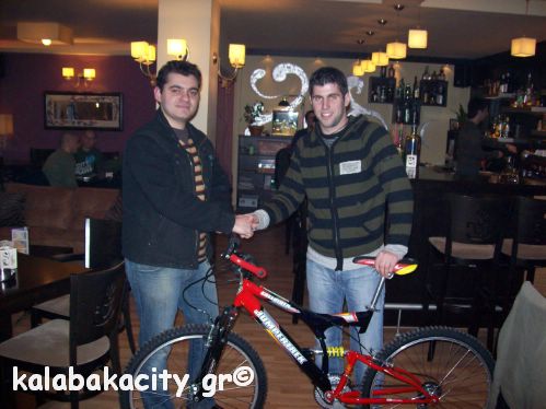 Την περασμένη Πέμπτη δόθηκε στον νικητή του παιχνιδιού "Find it", το ποδήλατο που είχε ως δώρο το cafe Καφωδείον σε όποιον έκανε το μεγαλύτερο σκορ. Ο νικητής με το μεγαλύτερο σκορ ήταν ο Δημήτρης Πολύζος ο οποίος έφυγε με ένα ολοκαίνουργιο mountain bike αγορασμένο από το νεο κατάστημα ποδηλάτων του Βασίλη Τσαντίκου επί της οδού Κονδύλη στην Καλαμπάκα. όπως μας ενημέρωσε ο ιδιοκτήτης του "Καφωδείον" κ. Σάκης Γάτσιας θα ακολουθήσουν και άλλοι διαγωνισμοί με πολλά δώρα στους νικητές.. Αναμένουμε….
