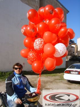 Ούτε ένα, ούτε δύο, ούτε τρία, αλλά Σαράντα περίπου μπαλόνια κρατούσε ο φίλος μας Άγγελος στα χέρια του το μεσημέρι της Πέμπτης, προκειμένου να τα χαρίσει στην αγαπημένη του με αφορμή και την ημέρα του Αγίου Βαλεντίνου. Το "μπουκέτο" μπαλόνια επιμελήθηκε ο Χρήστος Ρίζος με το κατάστημα του "Fiore" επί της Τρικάλων καθ’ ότι μοναδικός στο είδος του. Να ευχηθούμε στον Άγγελο Χρόνια πολλά, πάντα ερωτευμένος και να εισπράξει τα "ανάλογα" της κίνησης του!!!