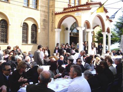 Τα έθιμα δεν ξεφτίζουν στην Πιαλεία Τρικάλων, αλλά συνεχώς ενισχύονται χρόνο με τον χρόνο. Το ενδιαφέρον και η συμμετοχή του κόσμου στην εκκλησιαστική εκδήλωση για τον εορτασμό του Αγίου Γεωργίου, την δεύτερη μέρα του Πάσχα 28-4-2008 ήταν έκδηλη. Προηγήθηκε η θεία λειτουργία μετά Αρτοκλασίας και μετά όλοι οι κάτοικοι του χωριού αλλά και πολλοί επισκέπτες, συγκεντρώθηκαν στο προαύλιο της εκκλησίας του Αγίου Γεωργίου που βρίσκεται στο κέντρο του χωριού. Στους συμμετέχοντες προσφέρθηκε κρέας πρόβειο με κριθαράκι, μαγειρίτσα, πίτες και ντόπιο κρασί. ‘Oλα αυτά ήταν δωρεές κτηνοτρόφων του χωριού και απλών κατοίκων προς τον Άγιο. Εδώ θα πρέπει να τονιστεί και η μεγάλη εθελοντική προσφορά εργασίας για να ετοιμαστούν όλα αυτά, από ορισμένους «αφανείς» κατοίκους. sungeorge3.jpgΚατά τη διάρκεια της εκδήλωσης, παρουσιάστηκαν παραδοσιακοί χοροί από το παιδικό και το μικτό τμήμα ενηλίκων Πιαλείας, όπου χοροδιδάσκαλος είναι ο κ. Παναγιώτης Μάνος. Έπειτα ακολούθησε χορός από τους κατοίκους όπου πρώτος χόρεψε ο πάτερ Φώτιος, εφημέριος του Αγίου Γεωργίου και ακολούθησαν οι επίσημοι. Στην εκδήλωση παρευρέθηκε σύσσωμο το Δ.Σ. του Δήμου Πιαλείων καθώς και άλλοι επίσημοι. Το έθιμο της «Διάκλησης», δηλαδή της φιλοξενίας των πιστών από την εκκλησία, δεν μπορεί να προσδιοριστεί ακριβώς χρονολογικά. Υπολογίζετε πως πρέπει να έχει την έναρξή του πριν από το 1600 μ.χ. Η Πιαλεία στα πολύ παλιά χρόνια ήταν κατεξοχήν κτηνοτροφικό χωριό, κάτι που ισχύει ακόμη και σήμερα, σε μικρότερο βαθμό όμως. sungeorge3.jpgΤο χωριό στην πάροδο των αιώνων υπέφερε από πολλά, καταστροφές από τους πολέμους, φυσικές καταστροφές, κ.α. Λέγεται πως οι κάτοικοι του χωριού αισθάνθηκαν την ανάγκη να καθιερώσουν αυτήν την εκκλησιαστική εκδήλωση, για να ευχαριστήσουν τον Αϊ Γιώργη που τον είχαν σαν προστάτη τους. Το σημερινό χωριό Πιαλεία, πριν το 1600 μ.χ. βρισκόταν στο Παλαιοχώρι, (παλιό χωριό) σημερινό οικισμό της Πιαλείας. Μαζί με το νέο χωριό χτίστηκε και η εκκλησία του Αγίου Γεωργίου. «Τα ήθη και έθιμα του χωριού δεν πρέπει να χαθούν», δήλωσε ο δάσκαλος του χωριού κ. Δημήτρης Παπαγιαννόπουλος, ο οποίος είναι γνωστός για την ιστορικο-πολιτιστική του προσφορά και δραστηριότητα.