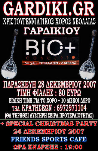 Την δική του Χριστουγεννιάτικη εκδήλωση πραγματοποιεί την ερχόμενη Παρασκευή 28 Δεκεμβρίου η φιλική μας Ιστοσελίδα gardiki.gr. To gardiki.gr πραγματοποιεί τον Χριστουγεννιάτικο χορό νεολαίας και καλούν όλο τον κόσμο να βρεθεί στο Bio+ που βρίσκεται στο 5ο χλμ. Τρικάλων – Λάρισας.