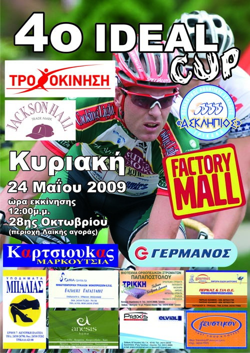 Συγκεκριμένα την Κυριακή 24 Μαΐου 2009 στις 12:00 στην κεντρική πλατεία (περιοχή λαϊκής αγοράς) ο Π.Α.Σ ΑΣΚΛΗΠΙΟΣ με συνδιοργανωτή την ΤΡΟΧΟΚΙΝΗΣΗ ΠΛΑΚΩΝΑΣ – ΜΕΛΙΣΣΗΣ, και την πολύτιμη βοήθεια της ΤΡΟΧΑΙΑΣ ΤΡΙΚΑΛΩΝ διοργανώνουνε αγώνες ταχύτητας σιρκουί IDEAL CUP 4 με συμμετοχές αθλητών από όλη την Ελλάδα .Οι αγώνες στηρίζονται από Τρικαλινές επιχειρήσεις που συνδράμουν οικονομικά ως σπόνσορες με σκοπό την καλύτερη προβολή του αθλήματος. Αξίζει ένα μεγάλο ευχαριστώ από τους διοργανωτές προς τις επιχειρήσεις – σπόνσορες factory mall, Γερμανός, Jackson hall, Καρτσιούκας μαρκούτσια, Μπάλιας υποδήματα, Soma center Βασίλης Παπαστάθης, Παπαποστόλου ορθοπεδικά στρώματα, gourmet Πέρκας & σια ο.ε, Anesis home λευκά είδη, praxis– elvial κουφώματα, και fast food Γευστικόν.