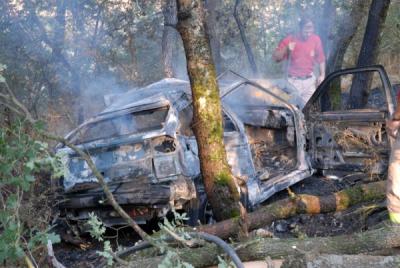 Σφοδρή σύγκρουση μεταξύ δυο οχημάτων σημειώθηκε το πρωί της Πέμπτης στον δρόμο Καλαμπάκας – Γρεβενών κοντά στη διασταύρωση προς τον Άγιο Δημήτριο Χασίων. Από την σφοδρή σύγκρουση τα δυο οχήματα εκτράπηκαν της πορείας τους και το ένα εξ αυτών μετά από μεγάλη απόσταση στη δασώδη περιοχή τυλίχτηκε στις φλόγες και καταστράφηκε ολοσχερώς. Στο σημείο του ατυχήματος έφτασαν αμέσως άνδρες της Πυροσβεστικής Υπηρεσίας Καλαμπάκας και απεγκλώβισαν τους δυο επιβαίνοντες που τραυματίστηκαν ελαφρά. Να σημειώσουμε πως στα δυο οχήματα επέβαιναν συνολικά 3 άτομα και ευτυχώς τραυματίστηκαν όλοι τους ελαφρά. Στο σημείο του ατυχήματος βρέθηκε από την αρχή ο Δήμαρχος κ. Κωστούλας.