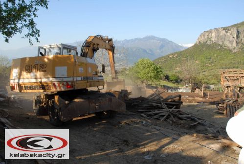 Την Δευτέρα το πρωί άρχισε όπως είχε αποφασιστεί η κατεδάφιση των ποιμνιοστασίων από την Ανατολική πλευρά των Μετεώρων. Η Δημοτική αρχή Καλαμπάκας, συμπολίτευση και αντιπολίτευση μαζί με τον αρμόδιο αντινομάρχη και αστυνομική δύναμη βρέθηκαν στον χώρο που στεγάζονταν τα εν λόγω μαντριά και προχώρησαν στις εργασίες όπως είχε αποφασιστεί εδώ και πάρα πολύ καιρό.