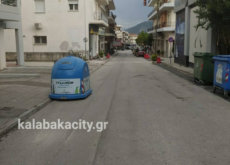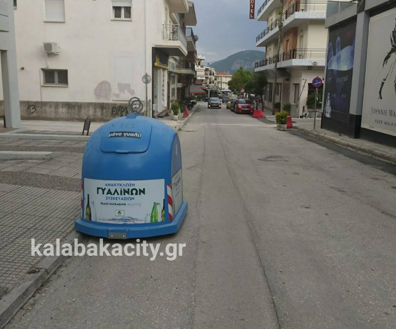 Σε σημείο που εμποδίζει διερχόμενα οχήματα και πεζούς βρίσκεται κάδος της ανακύκλωσης στην πόλη μας!