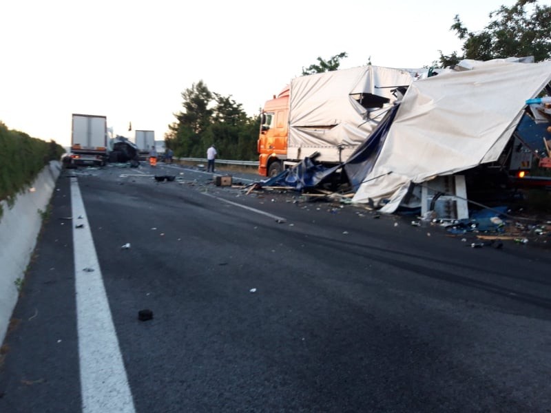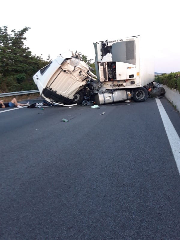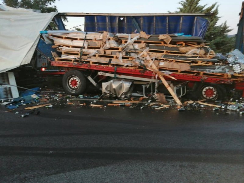 Η σύγκρουση ήταν σφοδρή και οι πληροφορίες αναφέρουν ότι το φορτηγό το οποίο κινούνταν στην ΑΘΕ, από άγνωστη μέχρι στιγμής αιτία, έπεσε σε φορτηγό που ήταν σταθμευμένο δεξιά.