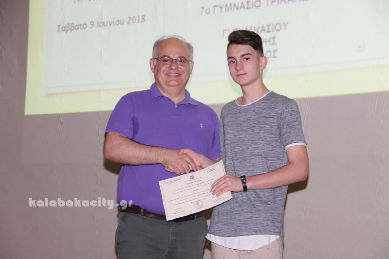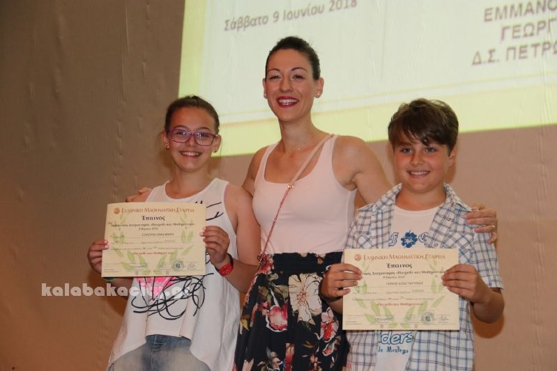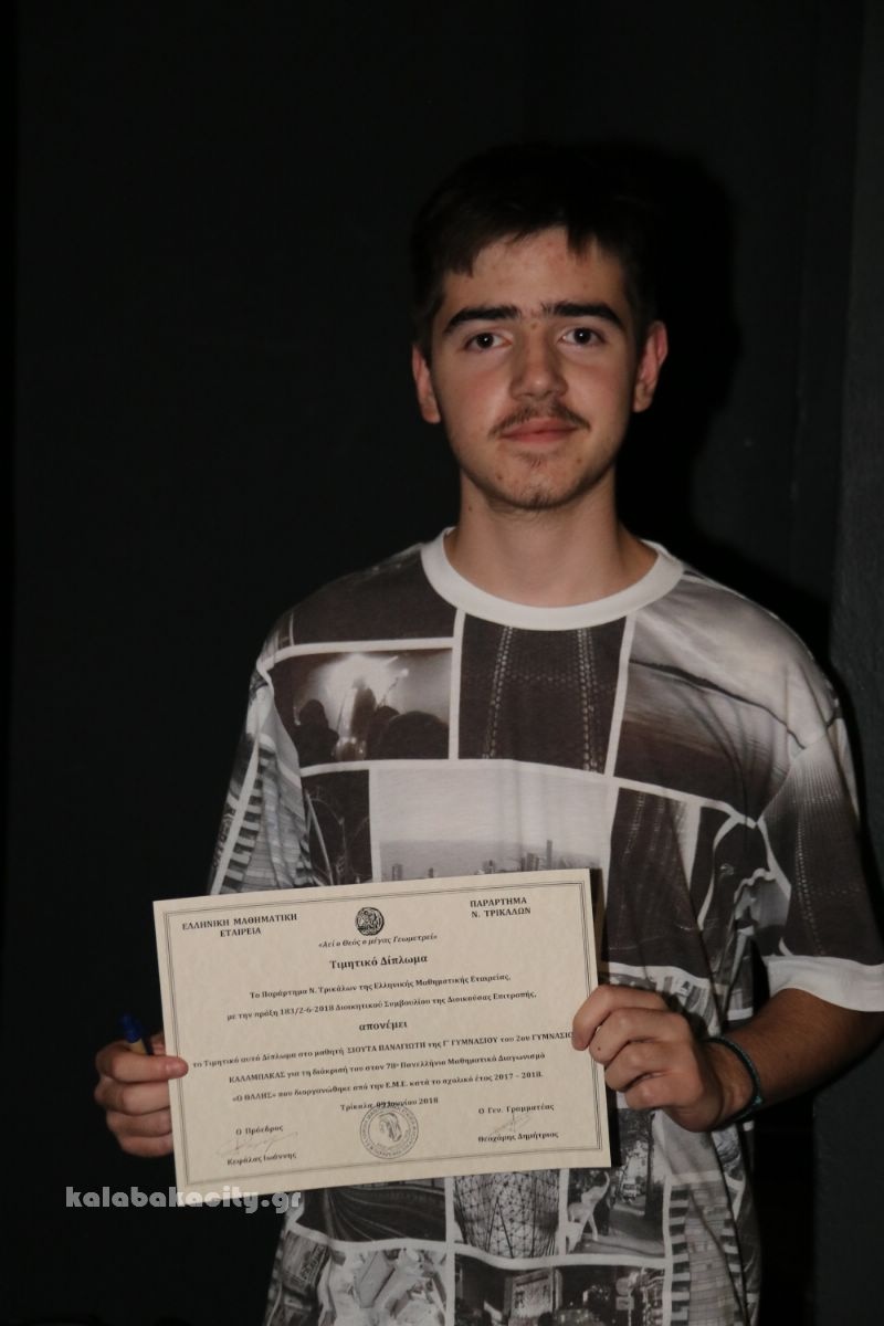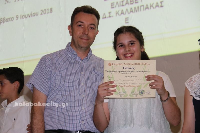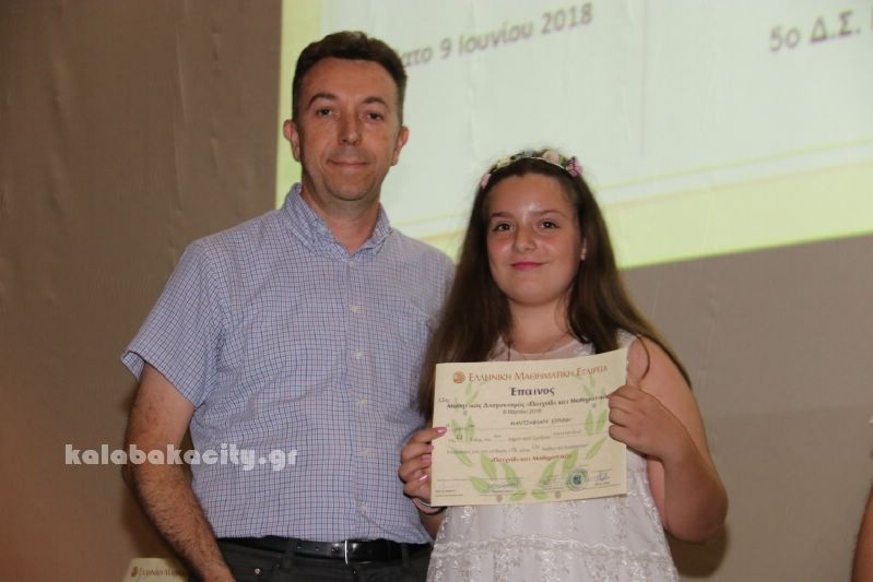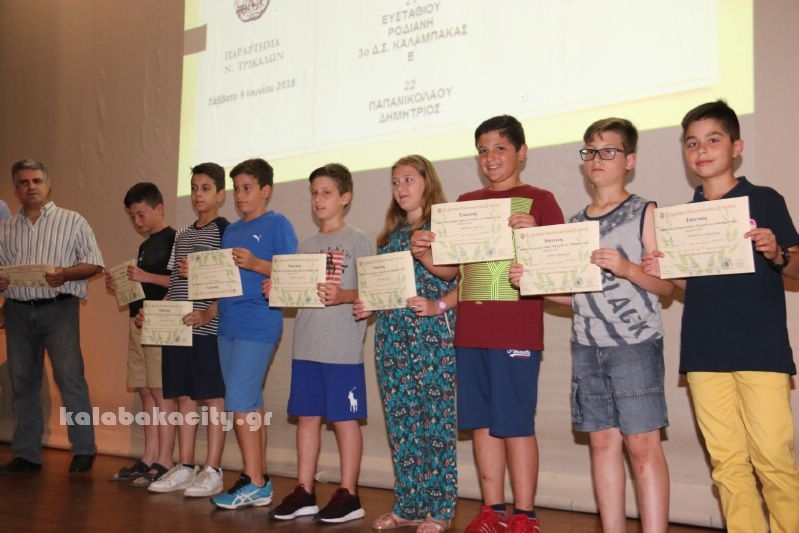 Σε ειδική εκδήλωση που έγινε σήμερα στα Τρίκαλα βραβεύτηκαν οι μαθητές των Δημοτικών, Γυμνασίων και Λυκείων που διακρίθηκαν στους μαθηματικούς διαγωνισμούς της Ελληνικής Μαθηματικής Εταιρίας κατά το σχολικό έτος 2017 -2018..