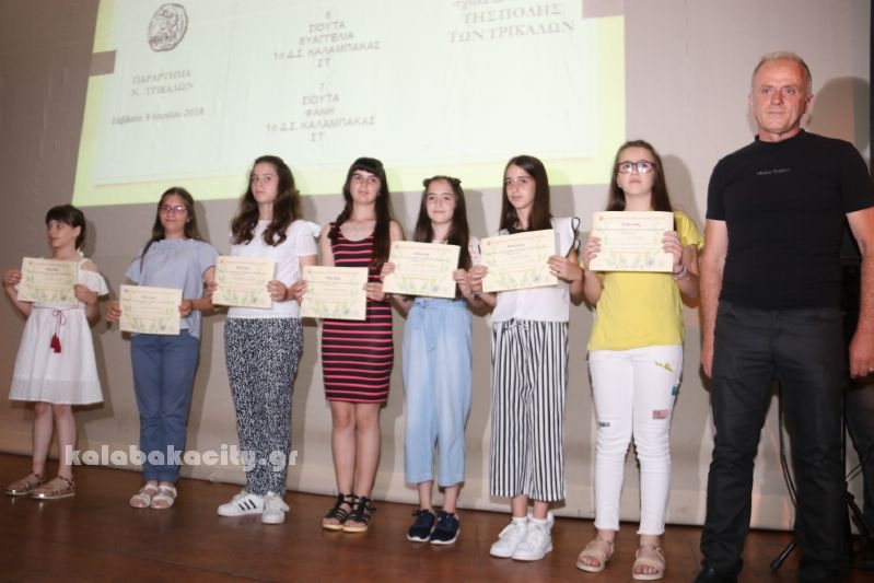 Η εκδήλωση ξεκίνησε με τις βραβεύσεις των μαθητών Γυμνασίου – Λυκείου, μαθητών δημοτικών εκτός της πόλης των Τρικάλων και έληξε με τις βραβεύσεις των μαθητών των σχολείων εντός των Τρικάλων.