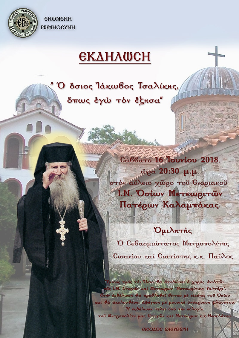 Το Σωματείο Ενωμένη Ρωμηοσύνη σας προσκαλεί στην εκδήλωση με θέμα “Ο Όσιος