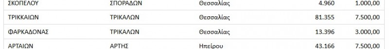 Ακολουθεί ο πίνακας με τα χρήματα που δίνονται σε δυο δήμους του ν. Τρικάλων.