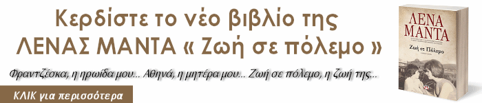 Λ.Μ.: Το επόμενο μυθιστόρημα, έχει παραδοθεί ήδη στις εκδόσεις Ψυχογιός και θα κυκλοφορήσει τον προσεχή Μάιο, αλλά είναι πολύ νωρίς να πούμε γι αυτό! Τώρα ζούμε έναν….πόλεμο!