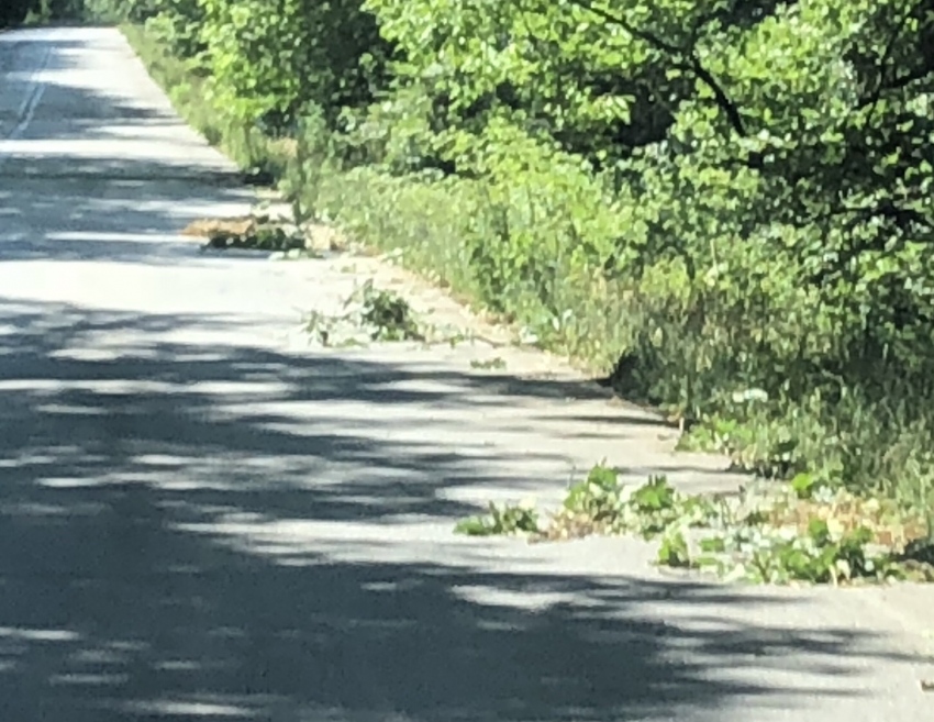 Τα κλαδιά των δέντρων που βρίσκονται δεξιά και αριστερά της ε.ο. γέρνουν προς το εσωτερικό με αποτέλεσμα τα φορτηγά που διέρχονται να σπάνε τα κλαδιά τα οποία πέφτουν στο οδόστρωμα με αποτέλεσμα να υπάρχει κίνδυνος πρόκλησης ατυχήματος.