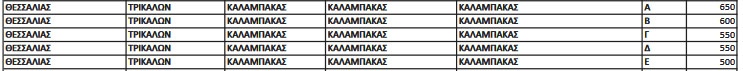Για την Καλαμπάκα οι αντικειμενικέ αξίες διαμορφώνονται ως εξής: