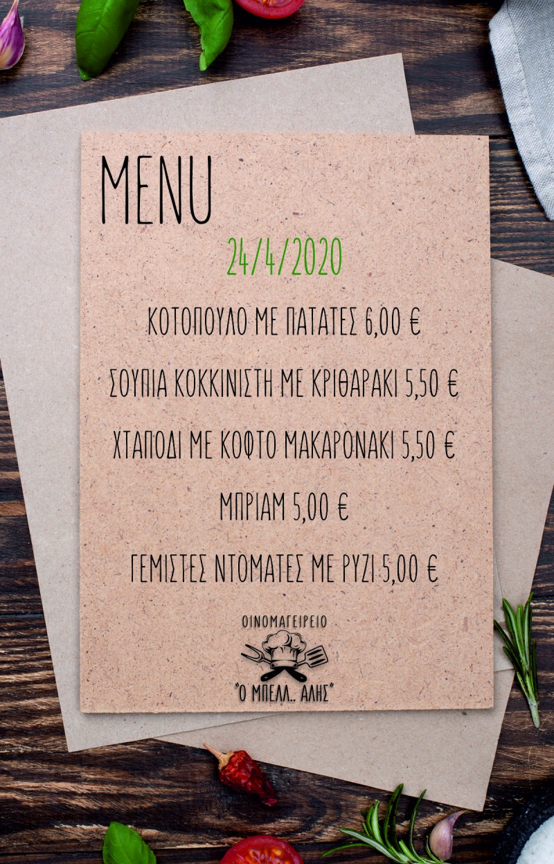 Το σημερινό μενού του καταστήματος είναι το παρακάτω: