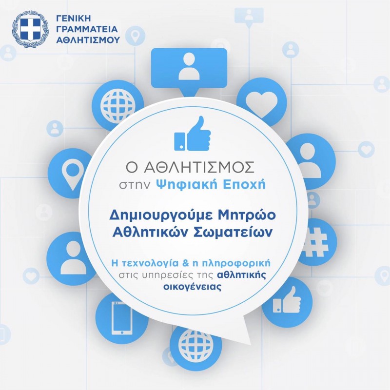 Η δημιουργία του «Μητρώου Αθλητικών Σωματείων», ως προπαρασκευαστικό στάδιο του καινοτόμου εγχειρήματος της δημιουργίας «Μητρώου Αθλητικών Φορέων», απόρροια της συνεργασίας του Υφυπουργείου Αθλητισμού με το Υπουργείο Ψηφιακής Διακυβέρνησης, θα καταγράψει για πρώτη φορά στην Ελλάδα το ακριβές σύνολο των αθλητικών ερασιτεχνικών σωματείων.