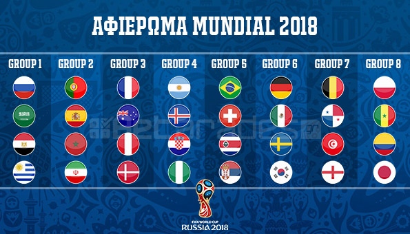 Παρακάτω, μπορείτε να δείτε ποιοι είναι οι όμιλοι του Μουντιάλ της Ρωσίας και πατώντας πάνω σε κάθε ομάδα να βρείτε το αφιέρωμα που έχει ετοιμάσει το Betarades.gr!