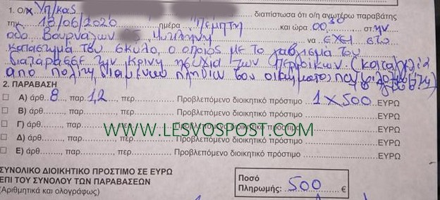 Πρόστιμο ύψους 500 ευρώ καλείται να πληρώσει ένας κάτοικος της Μυτιλήνης, επειδή ο σκύλος του… γαβγίζει.