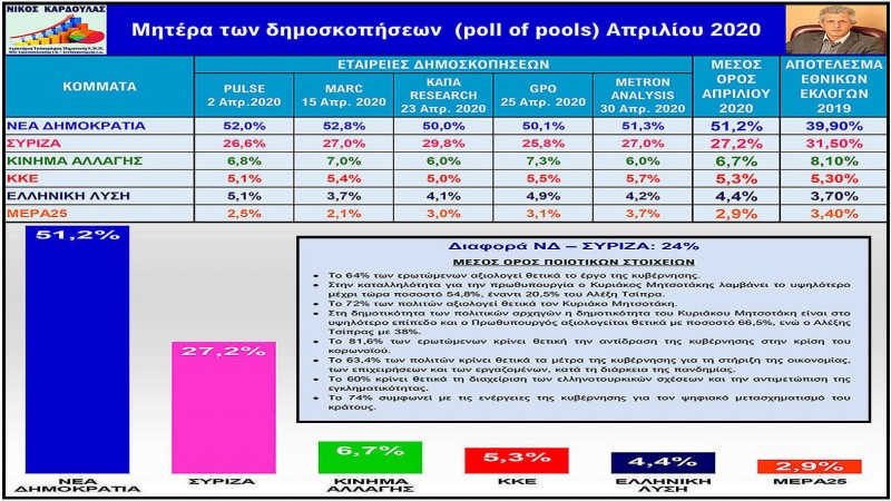 Νίκος Καρδούλας: Ηγεμονία ΝΔ και Κυριάκου Μητσοτάκη στη μητέρα δημοσκοπήσεων Απριλίου