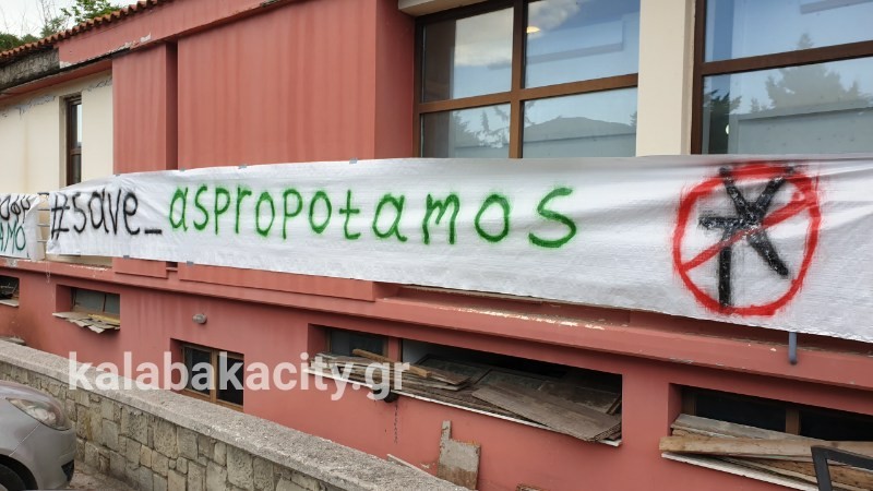 Εξω από το Πολιτιστικό Κέντρο Καλαμπάκας συγκεντρώθηκε σήμερα το απόγευμα το Δίκτυο φορέων και πολιτών για τη προστασία του Ασπροποτάμου την ώρα συνεδρίασης του Δημοτικού Συμβουλίου Δήμου Μετεώρων.
