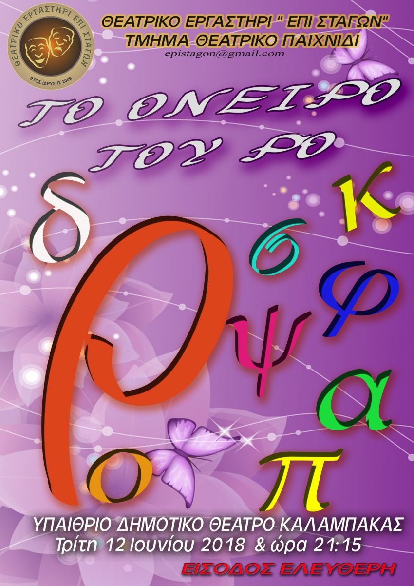 Το Θεατρικό Εργαστήρι «Επί Σταγών» και το τμήμα του Θεατρικό Παιχνίδι με μεγάλη χαρά ανεβάζει το θεατρικό έργο της Στέλλας Μιχαηλίδου « Το όνειρο του Ρο ».