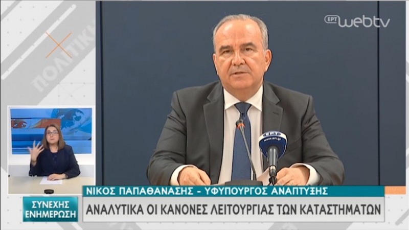Ο υφυπουργός Ανάπτυξης και Επενδύσεων Νίκος Παπαθανάσης, ανακοίνωσε τις δραστηριότητες και τους κανόνες λειτουργίας των οικονομικών φορέων που επανεκκινούν αύριο, Δευτέρα 18 Μαΐου και τη Δευτέρα 25 Μαΐου (3ο και το 4ο Στάδιο επαναφοράς της οικονομικής δραστηριότητας) δήλωσε: