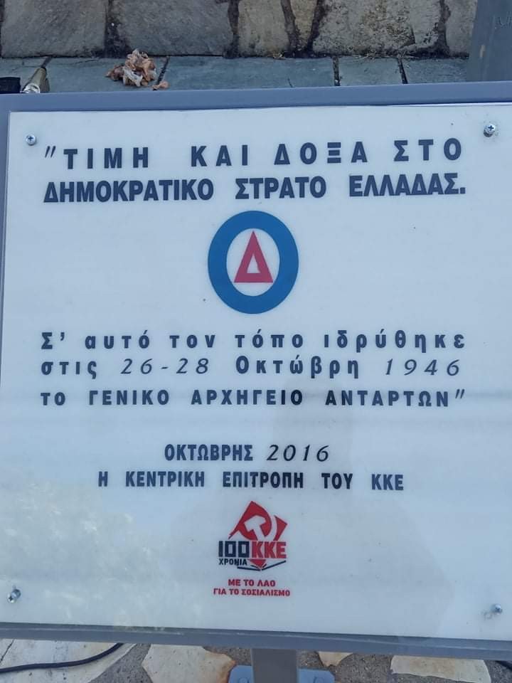 «Για ακόμα μια φορά, στέλνουμε ένα ξεκάθαρο και αποφασιστικό μήνυμα, τόσο προς την αστική τάξη, όσο και σε κάθε συλλογικό ή ατομικό στήριγμά της, πώς όσες φορές κι αν καταστρέψουν μνημεία και σύμβολα της ιστορίας του ΚΚΕ, του ΔΣΕ, του ΕΛΑΣ, εμείς θα τα αποκαθιστούμε και ταυτόχρονα θα προσπαθούμε να γινόμαστε καλύτεροι συνεχιστές της υπερεκατοντάχρονης πρωτοπόρας και ηρωικής δράσης του ΚΚΕ μέσα στην εργατική τάξη και το λαό, για την ανατροπή του καπιταλισμού και την οικοδόμηση της νέας σοσιαλιστικής-κομμουνιστικής κοινωνίας.