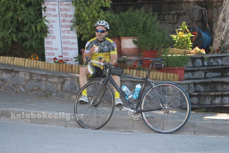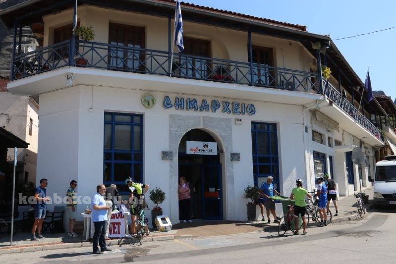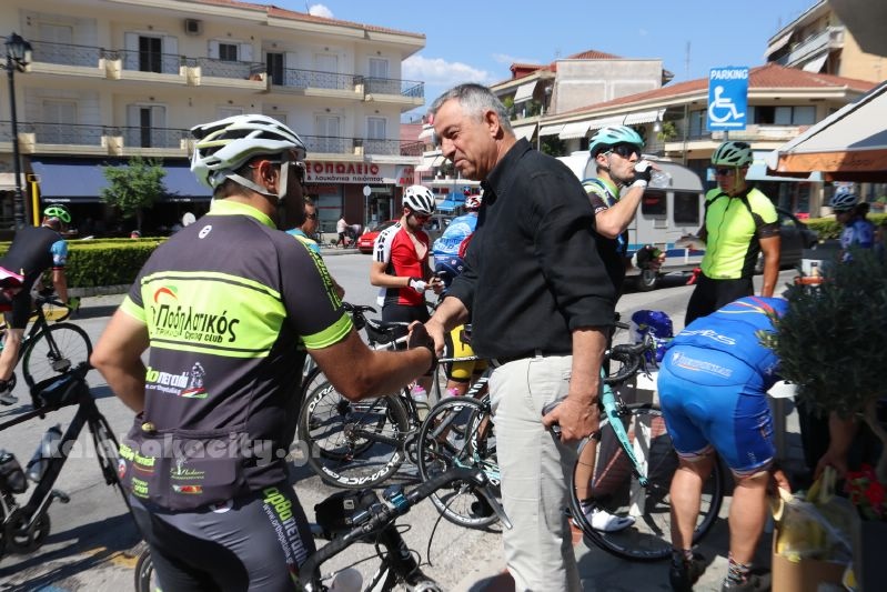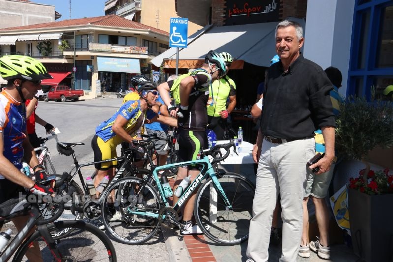 Του ποδηλάτες υποδέχθηκε ο αντιδήμαρχος κ. Κώστας Ράντος ο οποίος και βοηθούσε στην τροφοδοσία τους.
