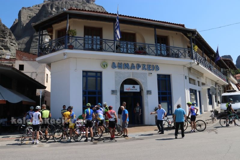 Μπροστά στο κέντρο Τουριστική Πληροφόρησης (infotourist) της πόλης μας έγινε η υποδοχή τους και η πρώτη στάση για νερό, μπανάνα και σάντουιτς και συνέχισαν την πορεία τους προς Μετέωρα για την συνέχεια της διαδρομής τους.