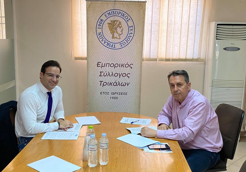 Συναντήσεις με τον Πρόεδρο του Εμπορικού Συλλόγου Τρικάλων, Χρήστο Μπλουγούρα, και τον Πρόεδρο του Επιμελητηρίου Τρικάλων, Βασίλη Γιαγιάκο, είχε ο Μικέλης Χατζηγάκης για να συζητήσουν οικονομικές προτάσεις για την στήριξη της Τρικαλινής επιχειρηματικότητας και της τοπικής αγοράς εργασίας.