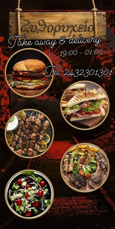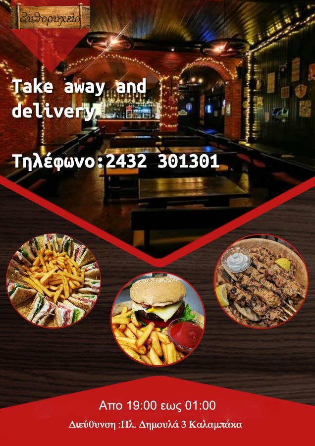 Delivery και take away από τις 19:00 έως τη 01:00 π.μ στο τηλ.: 24323 01301