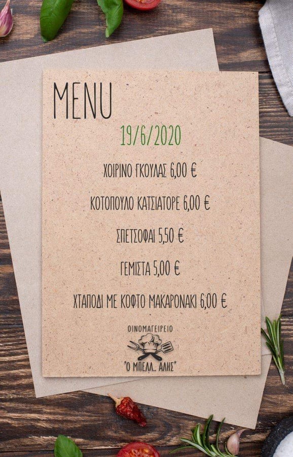 Το Οινομαγειρείο ” Ο ΜΠΕΛΛ..ΑΛΗΣ” στην Καλαμπάκα που βρίσκεται στην οδό Ράμμου 16 προτείνει για σήμερα Παρασκευή 19 Ιουνίου, τα εξής μαγειρευτά φαγητά τα οποία έρχονται στο σπίτι σας – delivery – με ένα τηλεφώνημα στο τηλ.: 24320 77909.