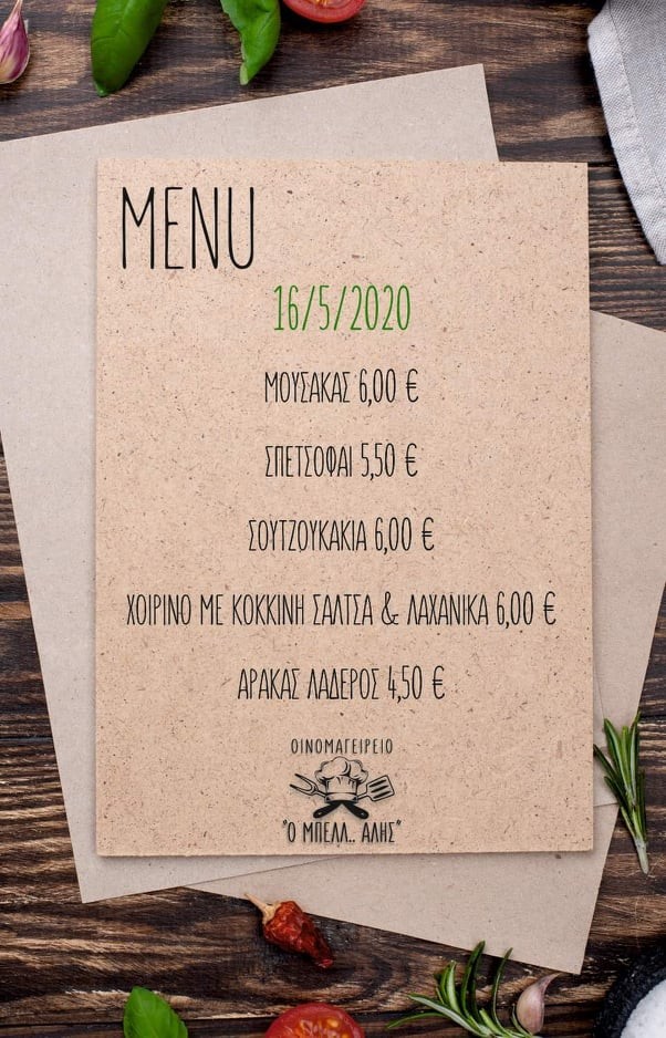 Το Οινομαγειρείο ” Ο ΜΠΕΛΛ..ΑΛΗΣ” στην Καλαμπάκα που βρίσκεται στην οδό Ράμμου 16 προτείνει για σήμερα Σάββατο 16 Μαΐου, τα εξής μαγειρευτά φαγητά τα οποία έρχονται στο σπίτι σας – delivery – με ένα τηλεφώνημα στο τηλ.: 24320 77909.