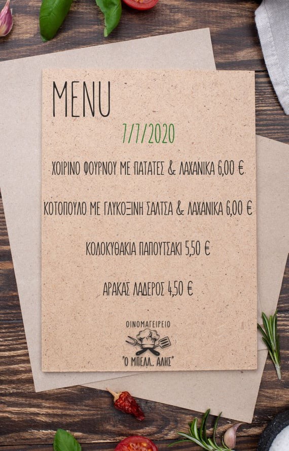 Το μενού για σήμερα Τρίτη από το Οινομαγειρείο ”Ο ΜΠΕΛΛ..ΑΛΗΣ” – DELIVERY