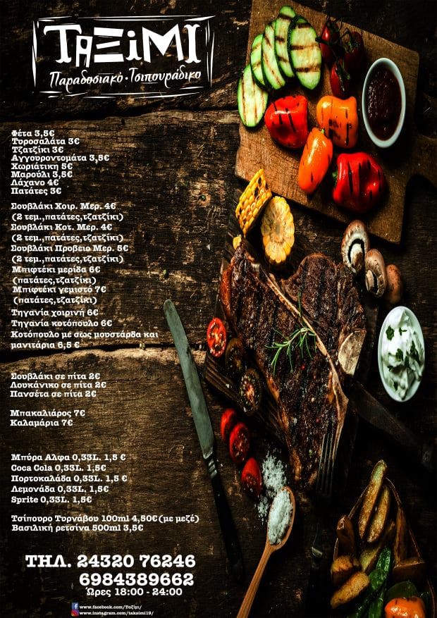 Στο σπίτι σας μπορείτε να απολαύσετε τις λιχουδιές του Παραδοσιακού – Τσιπουράδικου ΤΑΞΙΜΙ της Καλαμπάκας καθημερινά από τις 18:00 το απόγευμα έως τις 24:00 το βράδυ!!!