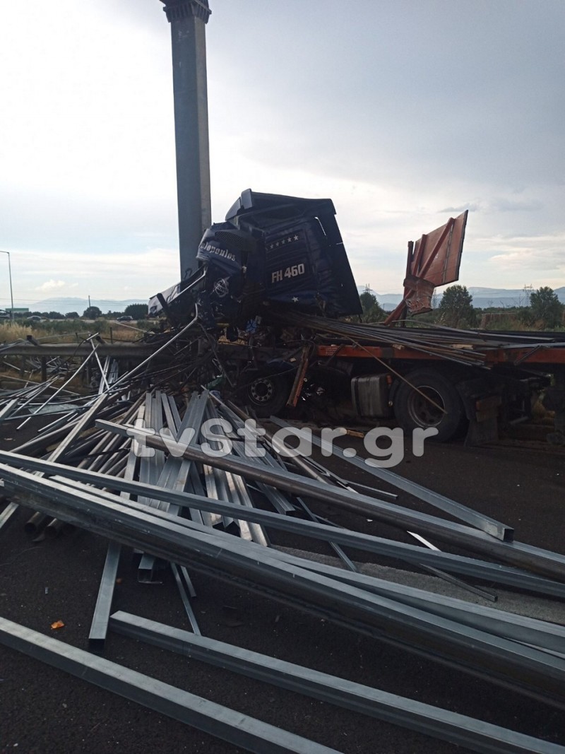 Σύμφωνα με πληροφορίες του tvstar.gr, ο οδηγός φορτηγού που μετέφερε σωλήνες και είχε κατεύθυνση τον Βόλο, έχασε τον έλεγχο του οχήματος του, το οποίο, προσέκρουσε στο πίσω μέρος ΙΧ με αποτέλεσμα, ο οδηγός του να βγει εκτός πορείας και να καταλήξει στις διαχωριστικές μπάρες.