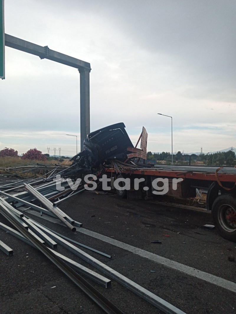 Σύμφωνα με πληροφορίες του tvstar.gr, ο οδηγός φορτηγού που μετέφερε σωλήνες και είχε κατεύθυνση τον Βόλο, έχασε τον έλεγχο του οχήματος του, το οποίο, προσέκρουσε στο πίσω μέρος ΙΧ με αποτέλεσμα, ο οδηγός του να βγει εκτός πορείας και να καταλήξει στις διαχωριστικές μπάρες.
