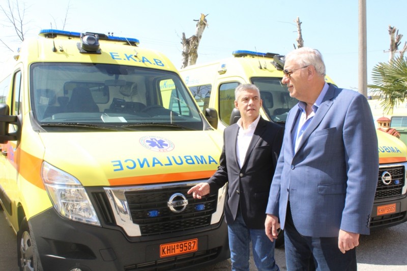 Παραδόθηκαν δέκα νέα ασθενοφόρα 4χ2 πλήρως εξοπλισμένα με νέο ιατροτεχνολογικό εξοπλισμό με χρηματοδότηση από το ΕΣΠΑ Θεσσαλίας 2014 -2020. Στην τελετή της έναρξης κυκλοφορίας των νέων ασθενοφόρων που πραγματοποιήθηκε στον αίθριο χώρο του ΕΚΑΒ Λάρισας παρευρέθηκε ο Περιφερειάρχης Θεσσαλίας μαζί με το Γενικό Γραμματέα Υπουργείου Εσωτερικών Μιχάλη Σταυριανουδάκη. Το έργο είναι προϋπολογισμού 961.000 ευρώ και περιλαμβάνει ακόμη 1 ασθενοφόρο 4χ4 και 2 Κινητές Μονάδες για τις ανάγκες του ΕΚΑΒ Θεσσαλίας. Στην εκδήλωση παρευρέθηκαν ακόμη οι βουλευτές της ΝΔ Χρήστος Κέλλας, Χρήστος Μπουκώρος και Θανάσης Λιούπης, ο βουλευτής του ΣΥΡΙΖΑ Βασίλης Κόκκαλης, ο Αντιπεριφερειάρχης Π.Ε. Λάρισας Βασίλης Πινακάς, η Πρόεδρος του Περιφερειακού Συμβουλίου Τάνια Δόκου, ο αναπληρωτής Διοικητής της 5ης ΥΠΕ Ηλίας Τσιαούσης, ο Διοικητής του Πανεπιστημιακού Νοσοκομείου Λάρισας Δημήτρης Κατσικονούρης, ο Δήμαρχος Τεμπών Γιώργος Μανώλης, ο Αντιδήμαρχος του Δήμου Λαρισαίων Παναγιώτης Νταής, η επικεφαλής της μείζονος αντιπολίτευσης στο Δήμο Λαρισαίων Ρένα Καραλαριώτου, ο Πρόεδρος του Συλλόγου Εργαζομένων ΕΚΑΒ Θεσσαλίας Γιάννης Γούλας και στελέχη του ΕΚΑΒ Θεσσαλίας.