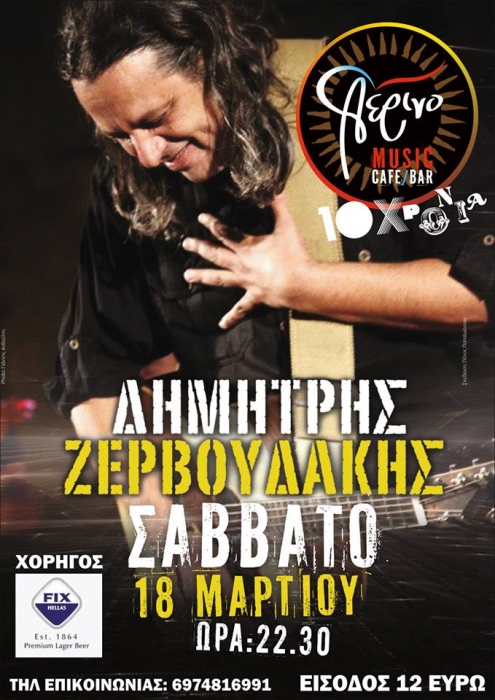 10 Χρόνια ΑΕΡΙΝΟ – Ο Δημήτρης Ζερβούδακης απόψε στο ΑΕΡΙΝΟ