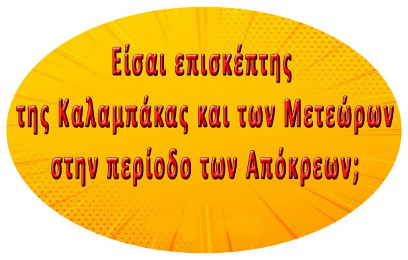 - Μια ΔΩΡΕΑΝ διήμερη διαμονή στην Καλαμπάκα σε ημερομηνία της αρεσκείας σου, προσφορά της Ένωσης Ξενοδόχων Ν. Τρικάλων.
