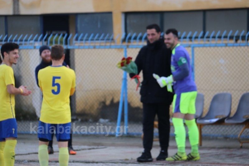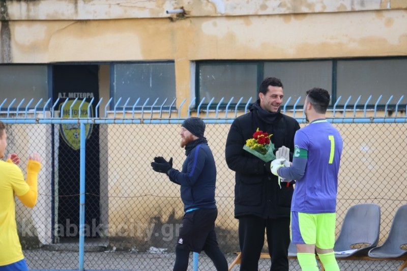 Λουλούδια στον προπονητή τους Γιώργο Βακουφτσή έδωσαν λιγο πριν το παιχνιδι τους οι παίκτες των Μετεώρων.
