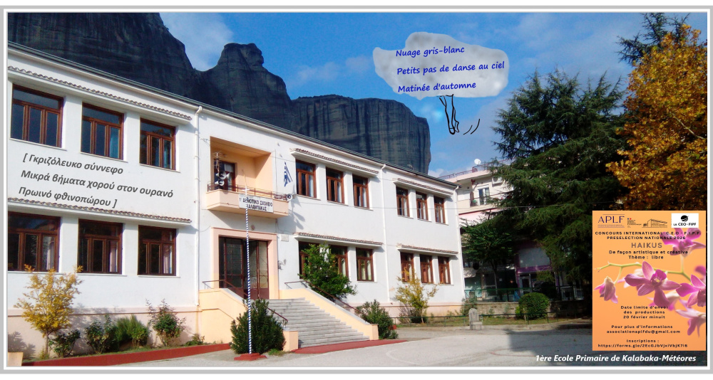 που συμμετέχουν ως επιτροπή στην εθνική επιλογή, επέλεξαν, ανάμεσα σε πάρα πολλές συμμετοχές  σχολείων στην Ελλάδα, το ποίημα haïku των μαθητών της ΣΤ’ τάξης του 1ου Δημοτικού Σχολείου  Καλαμπάκας ως μία από τις καλύτερες δημιουργίες στη συγκεκριμένη μορφή και κατηγορία, αφού  προηγουμένως αξιολόγησαν και συνεκτίμησαν τη δουλειά πάνω στη γαλλική γλώσσα, την τήρηση των  οδηγιών, την πιστότητα στην μορφή, τον πρωτότυπο χαρακτήρα του έργου, την αισθητική, συναισθηματική και ευρηματική του πλευρά.