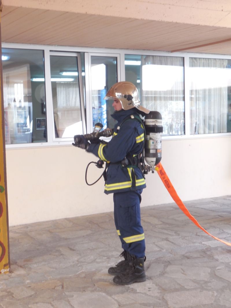 Το κλιμάκιο των πυροσβεστών εξήγησε και έδειξε τον τρόπο λειτουργίας πυροσβεστήρων  με την υπόδειξη / υπενθύμιση να βρίσκονται σε κάθε σπίτι ειδικά όταν υπάρχουν τζάκια σε αυτά. Παράλληλα (αφού απευθύνονταν σε εφήβους) επεσήμαναν συνεχώς δύο ζητήματα. «ΟΧΙ ΟΔΗΓΗΣΗ ΜΕ ΑΛΚΟΟΛ , ΣΤΑ ΜΗΧΑΝΑΚΙΑ ΠΑΝΤΟΤΕ ΜΕ ΚΡΑΝΟΣ»!