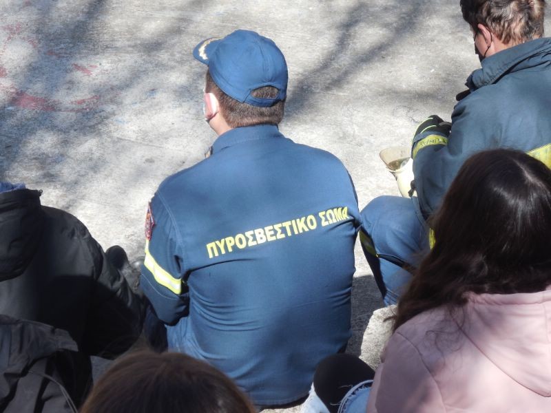Οι μαθητές αλλά και οι εκπαιδευτικοί είδαν «επί το έργον» τις διαδικασίες κατάσβεσης και απεγκλωβισμού ευχόμενοι τέτοια γεγονότα να πραγματοποιούνται ως «θεατρικά δρώμενα».