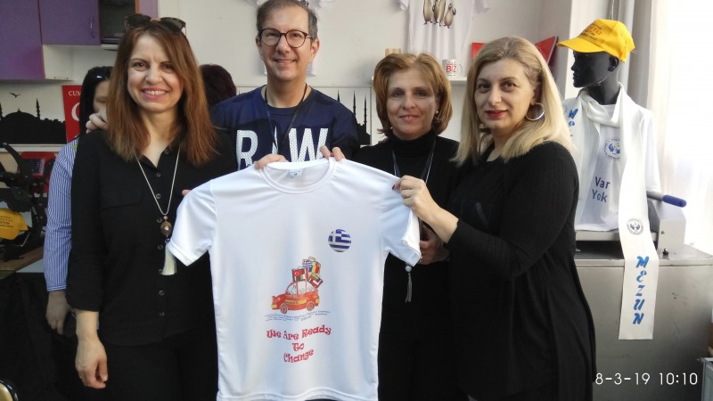 H τελευταία μέρα, Παρασκευή 8 Μαρτίου, ξεκίνησε με μάθημα στο εργαστήρι εκτυπώσεων. Οι μαθητές μας έδειξαν πώς τυπώνουμε σε κούπες και μπλουζάκια και μας επεφύλαξαν μια έκπληξη. Κατασκεύασαν και μας δώρισαν κούπες και μπλουζάκια με το λόγκο του σχεδίου ERASMUS+ CHANGE! Κατόπιν μιας ενδελεχούς συζήτησης των συντονιστών του προγράμματος τόσο επί των πεπραγμένων όσο και επί των επικείμενων δραστηριοτήτων του σχεδίου-ακολούθησε συζήτηση και συμπληρώθηκε το φύλλο αξιολόγησης. Τέλος, απονεμήθηκαν τα πιστοποιητικά παρακολούθησης.