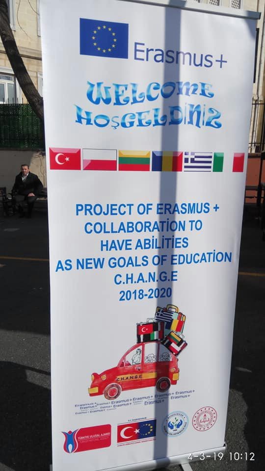 Τη Δευτέρα, 4 Μαρτίου στο Ειδικό Επαγγελματικό σχολείο της Τουρκίας Kazım Beyaz Özel Eğitim Meslek Okulu έλαβε χώρα μια εγκάρδια τελετή υποδοχής από τον Διευθυντή, τους καθηγητές, τους μαθητές αλλά και τον Προϊστάμενο Εκπαιδευτικών θεμάτων της περιοχής. Ακολούθησαν παραδοσιακοί χοροί και τραγούδια. Στη συνέχεια έγιναν οι παρουσιάσεις της Τουρκίας, του εκπαιδευτικού συστήματος της χώρας και παρουσίαση του σχολείου και επίσης έγινε ξενάγηση στο χώρο του σχολείου.