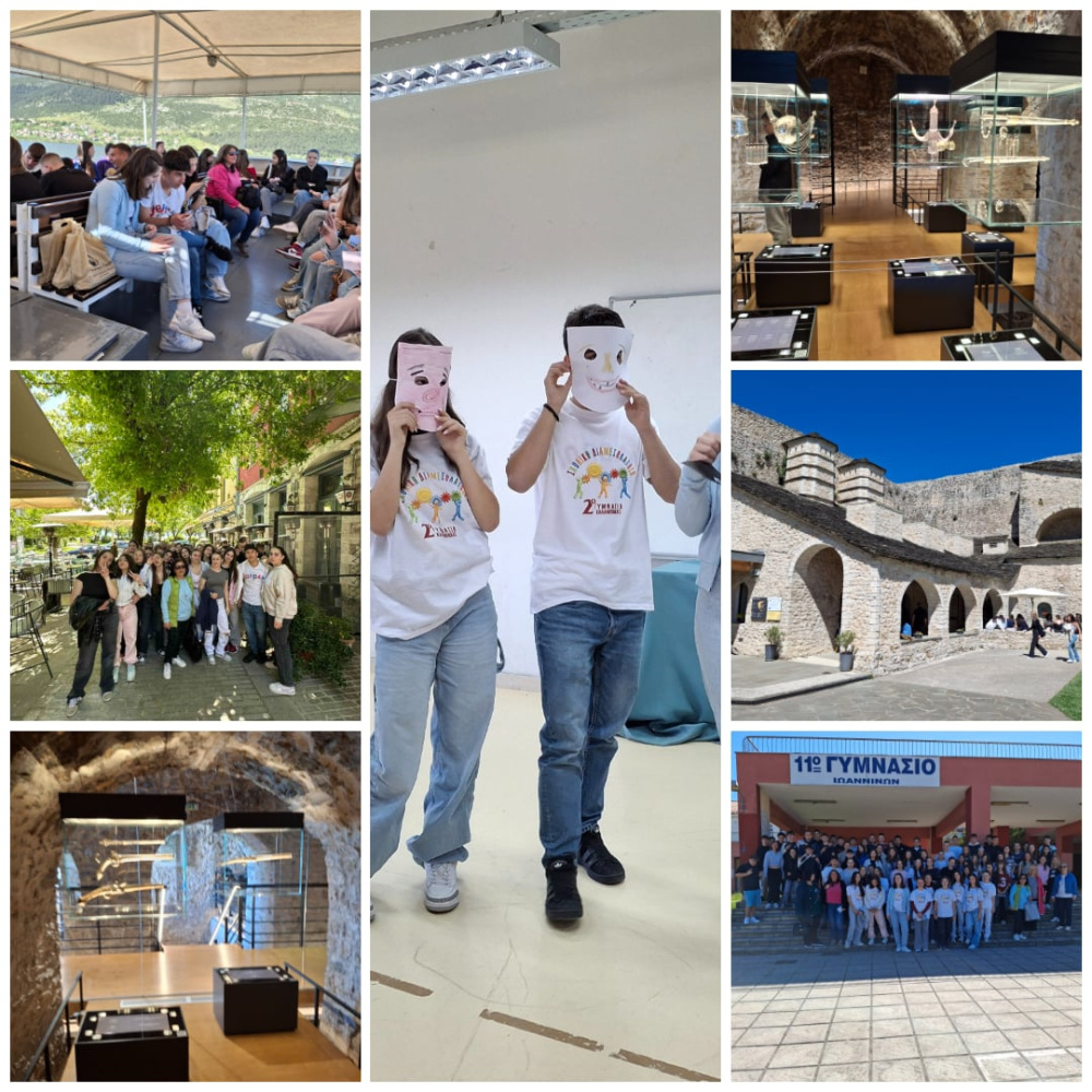 Κατά την επίσκεψη, οι μαθητές μας φιλοξενήθηκαν στο 11ο Γυμνάσιο Ιωαννίνων, όπου έγιναν δεκτοί με ιδιαίτερη θέρμη και εγκαρδιότητα από τη διεύθυνση, τους εκπαιδευτικούς και τους μαθητές του σχολείου. Στο πλαίσιο της επίσκεψης, πραγματοποιήθηκε ένα εξαιρετικά ενδιαφέρον βιωματικό εργαστήριο με θέμα την αναγνώριση και έκφραση συναισθημάτων, αξιοποιώντας ως βασικό εργαλείο τις θεατρικές μάσκες. Μέσα από τη βιωματική αυτή διαδικασία, αναδείχθηκαν και ενισχύθηκαν δεξιότητες όπως η ενσυναίσθηση, η ενεργητική ακρόαση και η διαχείριση συγκρούσεων — δεξιότητες-πυλώνες της σχολικής διαμεσολάβησης.