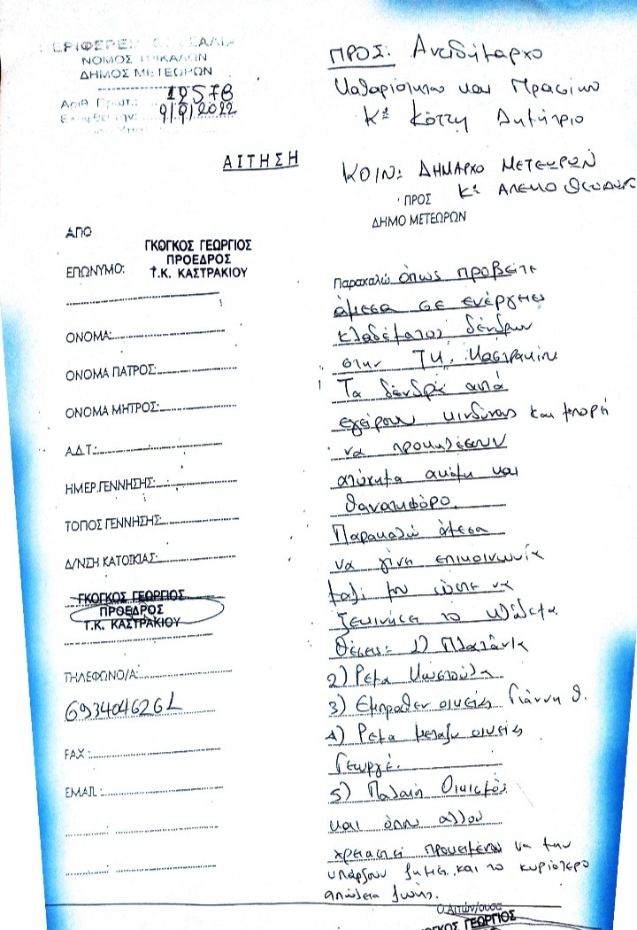 Παρακάτω παραθέτω την αίτηση που έχω καταθέσει προς τον αρμόδιο αντιδήμαρχο Κο Κόττη Δημήτριο και κάπου εδώ θέλω να επισημάνω τα κάτωθι: