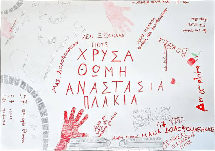 Ο Διευθυντής και οι Εκπαιδευτικοί του 4ου Δημοτικού Σχολείου Καλαμπάκας στην μνήμη των τριών κοριτσιών ενώνουμε τη φωνή μας με τον Σύλλογο Συγγενών Θυμάτων Τεμπών 2023 απαιτώντας δικαιοσύνη για τις 57 ψυχές που τόσο άδικα χάθηκαν.